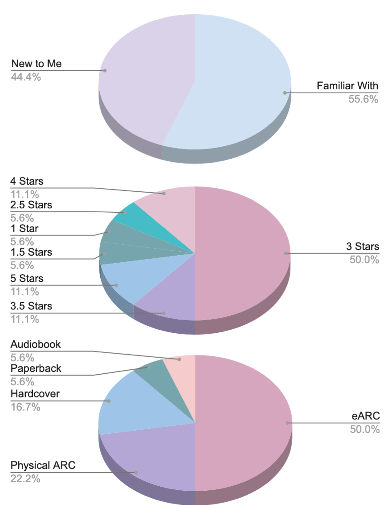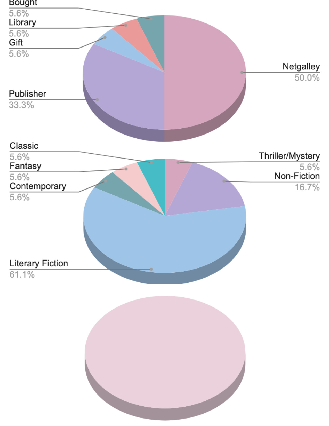 Now, pie charts (with one ugly one because I read only adult books)! But first: